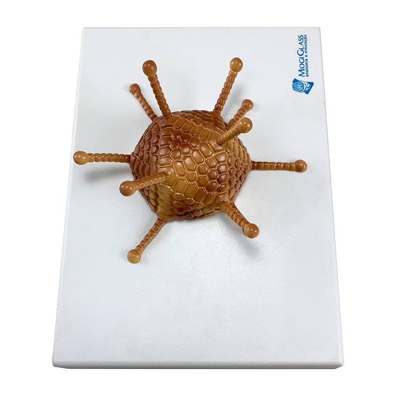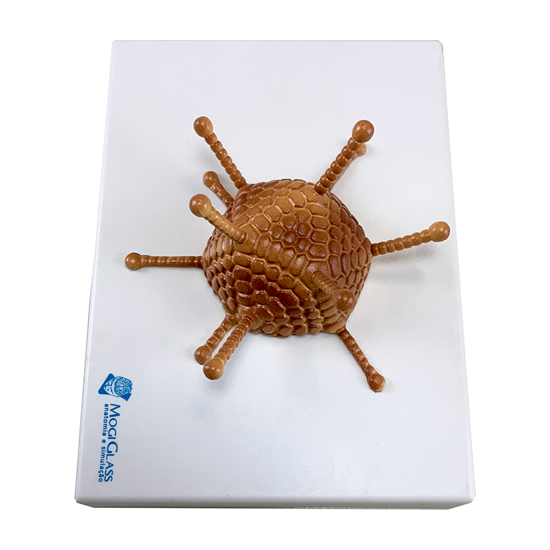 Adenovírus BI32 é um modelo que apresenta uma representação ampliada e detalhada da estrutura do capsídeo viral, montado sobre base em polímero. Permite a visualização das principais estruturas relevantes para o estudo da virologia, oferecendo alto valor didático e científico.