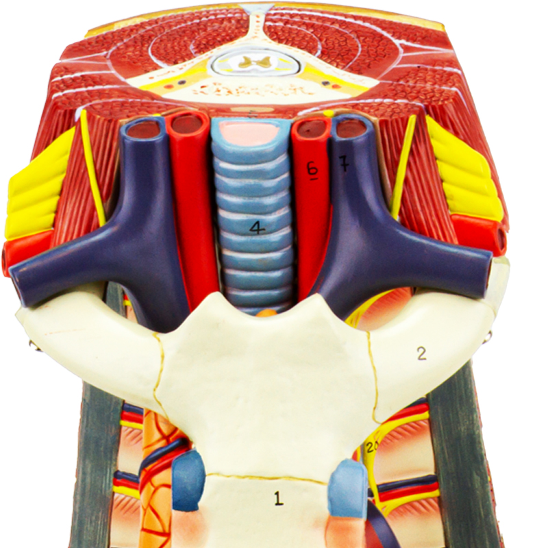 Coração com Esôfago e Traqueia 6 Partes CO13, é um modeloanatômico do tórax humano, em tamanho natural, é composto por 6 partes, incluindo um coração removível em duas seções, o que permite a visualização interna das câmaras cardíacas e das válvulas. O esterno e o timo são removíveis, revelando em detalhes o saco pericárdico, os grandes vasos pulmonares e a circulação sistêmica.