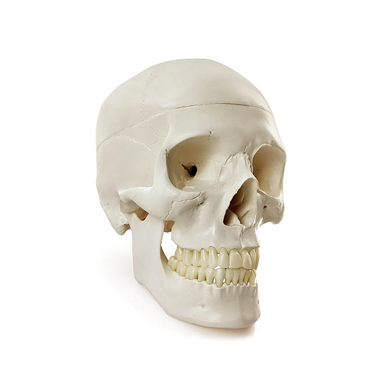Essa característica proporciona maior durabilidade, segurança no manuseio e excelente fidelidade anatômica, tornando o modelo ideal para estudo detalhado da osteologia do crânio.