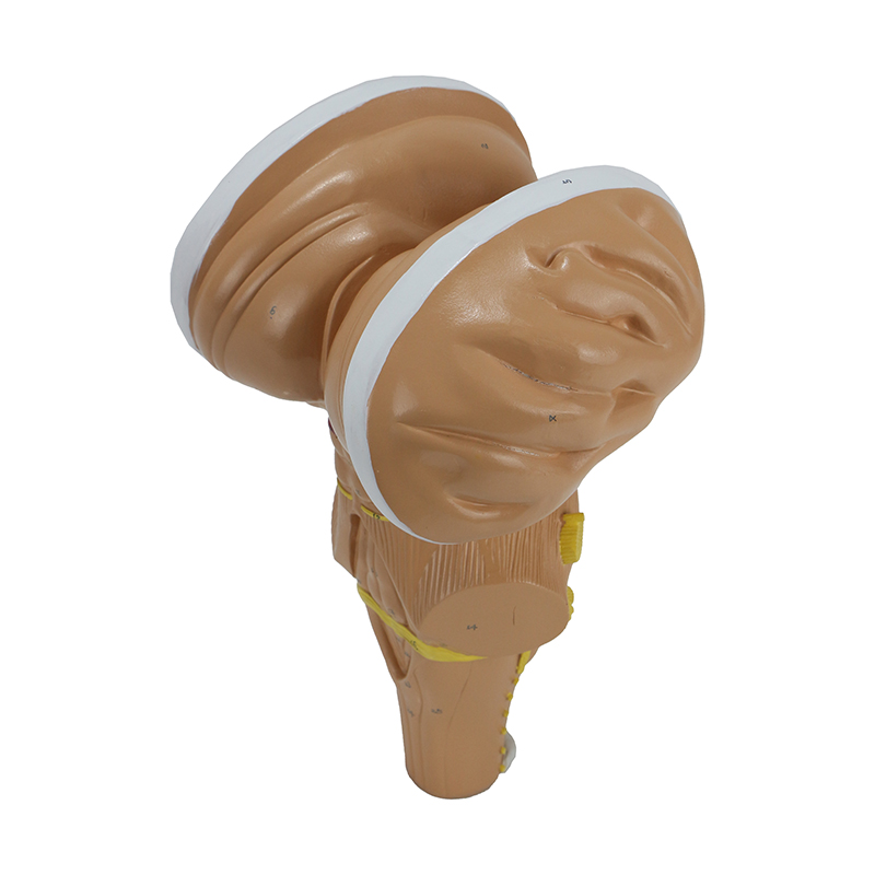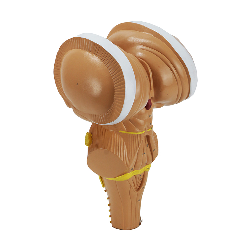 Construído em peça única, facilita o manuseio e o estudo aprofundado da organização tridimensional do tronco encefálico (truncus encephali). As estruturas estão numeradas e coloridas, oferecendo identificação clara e precisa.